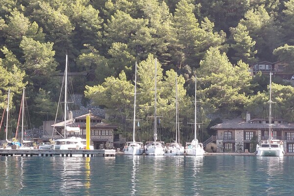 Our fleet consisting of Sea Friends, Dianora, Feel the Magic and Mavi Mercury, all between 41’ and 45’, set off on Sunday morning for a long leg of c40NM up to Ekincik, sadly, mostly under motor. 3 boats opted to berth on the quay at the west end of the village whilst Feel the Magic opted for My Marina on the far side of the bay.